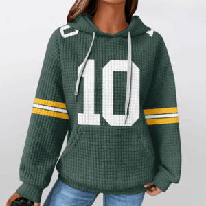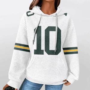 Green Bay Packers White Waffle Hoodie Custom Name And Number