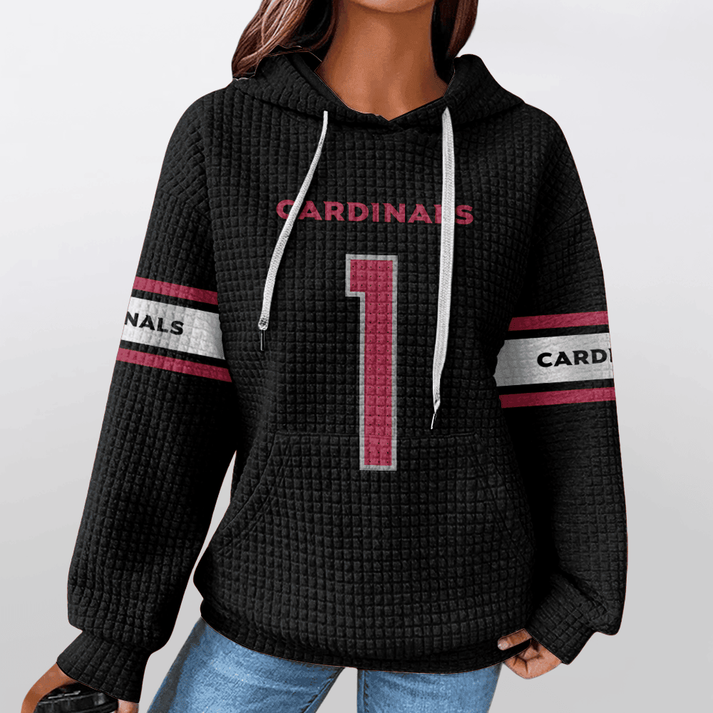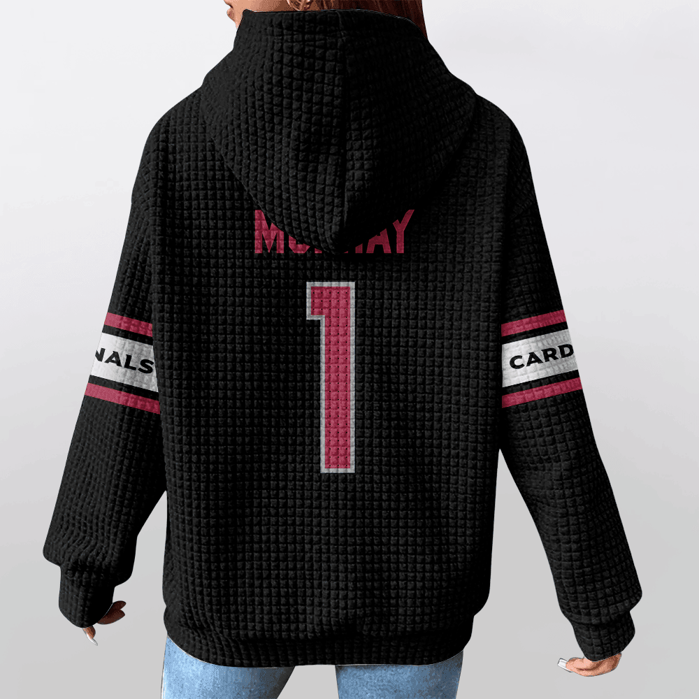 Arizona Cardinals Black Waffle Hoodie Custom Name And Number