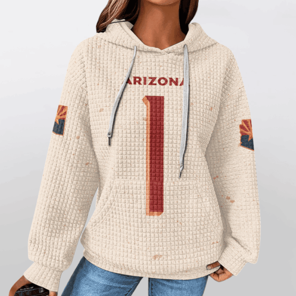 Arizona Cardinals Cream Waffle Hoodie Custom Name And Number