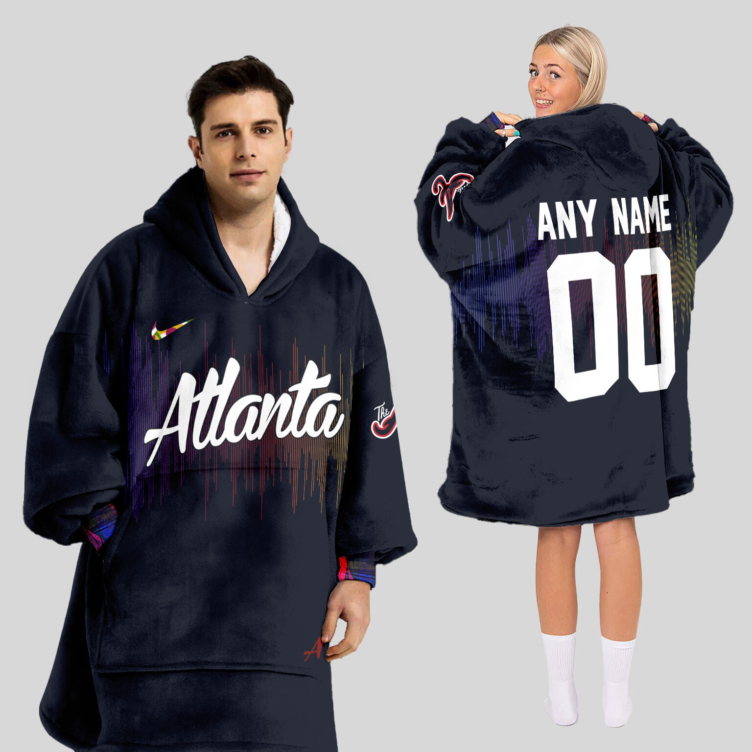 Atlanta Braves MLB Design Blanket Hoodie Custom Name And Number