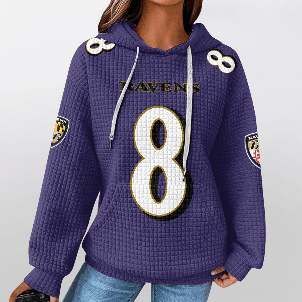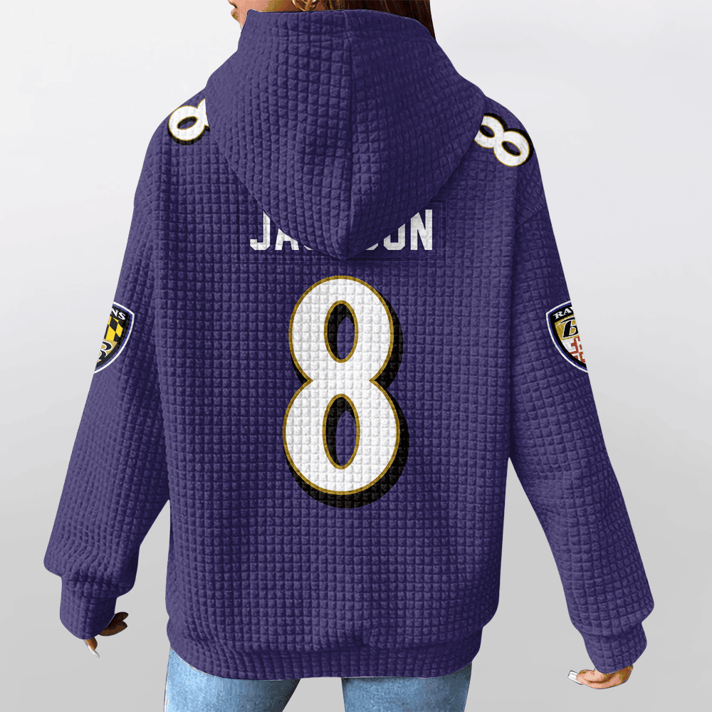 Baltimore Ravens Purple Waffle Hoodie Custom Name And Number