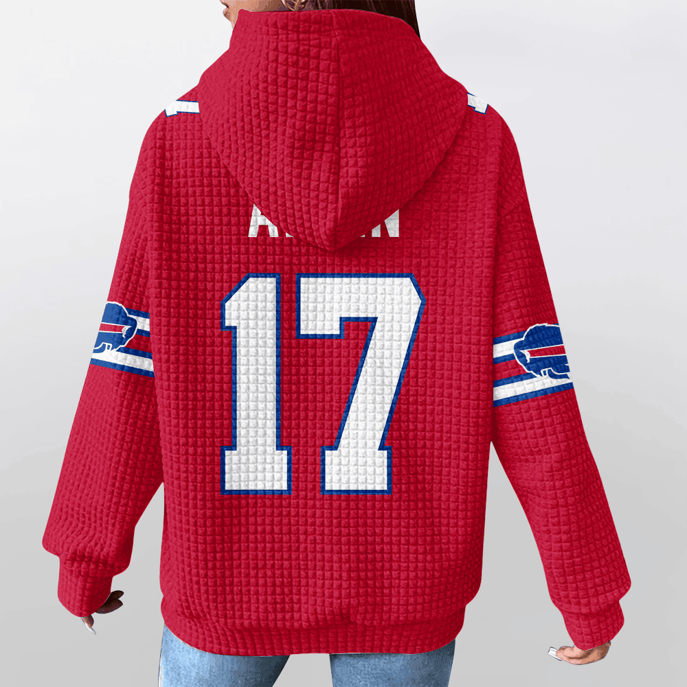 Buffalo Bills Red Waffle Hoodie Custom Name And Number