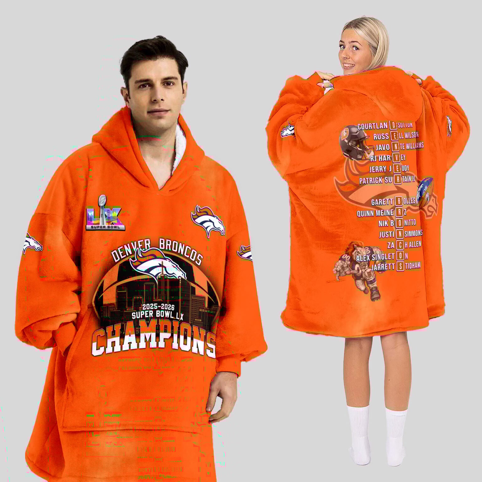 Denver Broncos Super Bowl LX Champions Style Blanket Hoodie