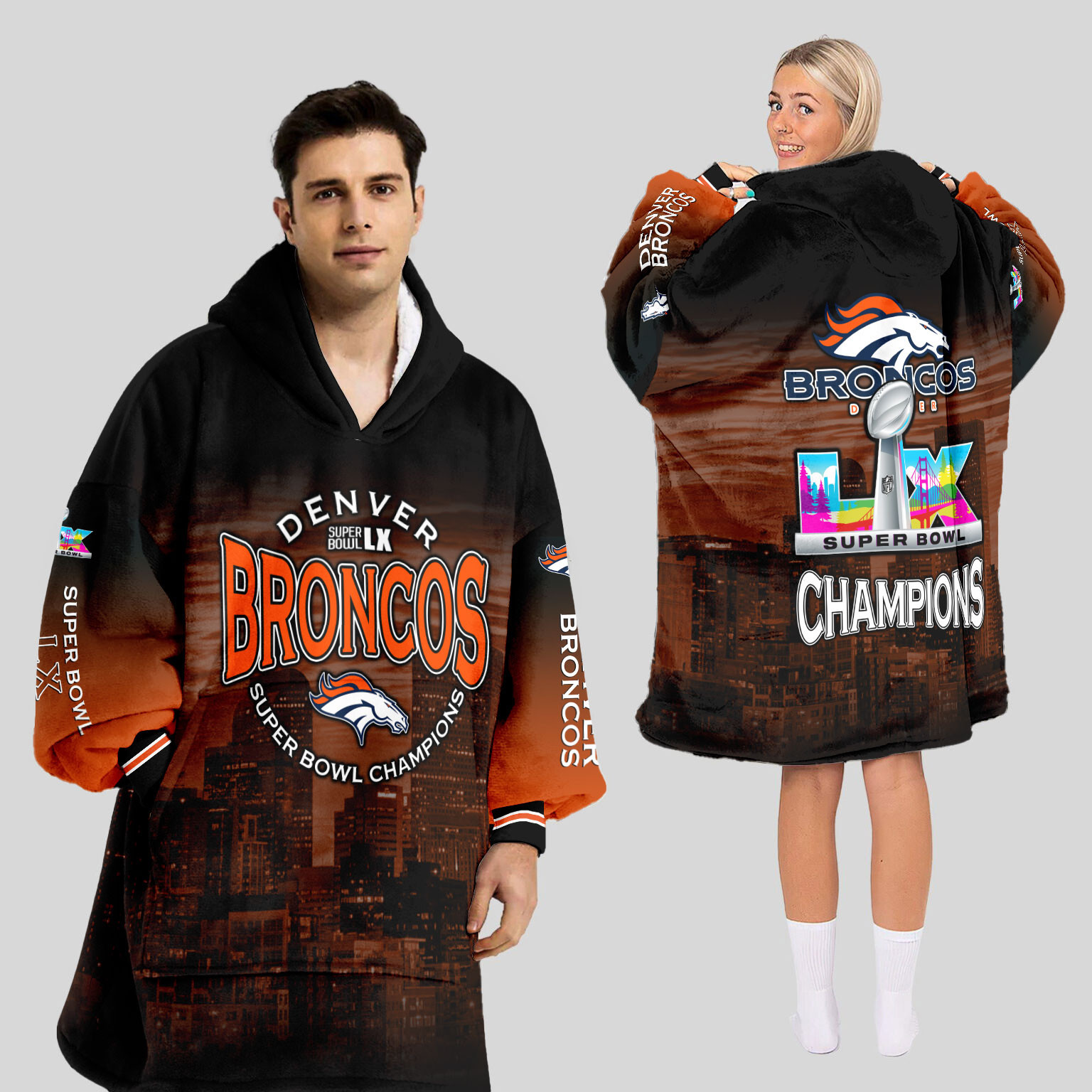 Denver Broncos Super Bowl LX Champions Style Blanket Hoodie