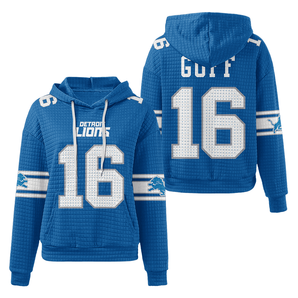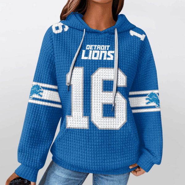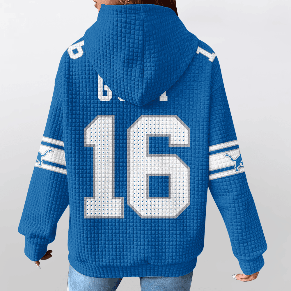 Detroit Lions Blue Waffle Hoodie Custom Name And Number