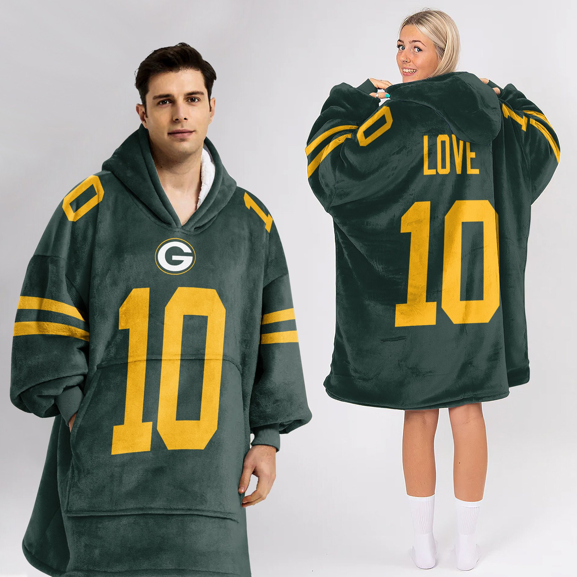 Green Bay Packers Football Unisex Blanket Hoodie Custom Name And Number