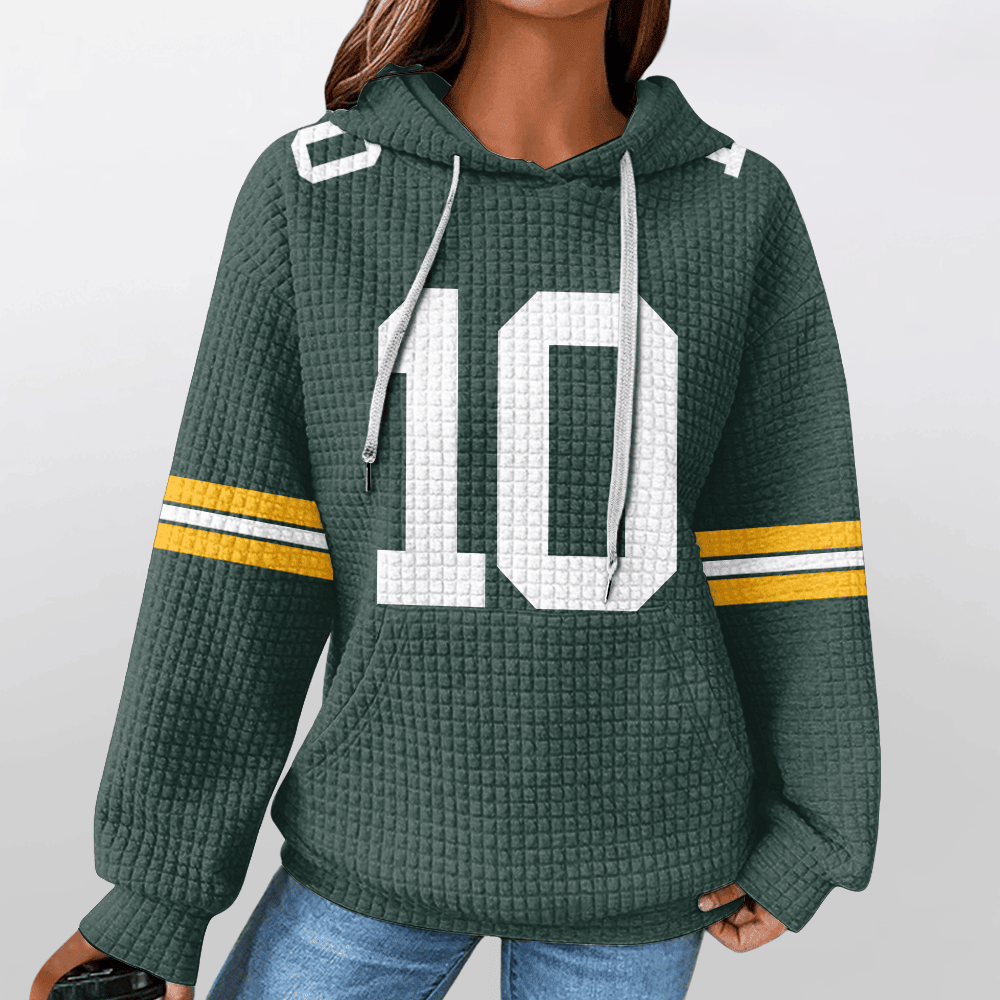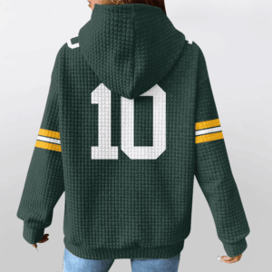 Green Bay Packers White Waffle Hoodie Custom Name And Number