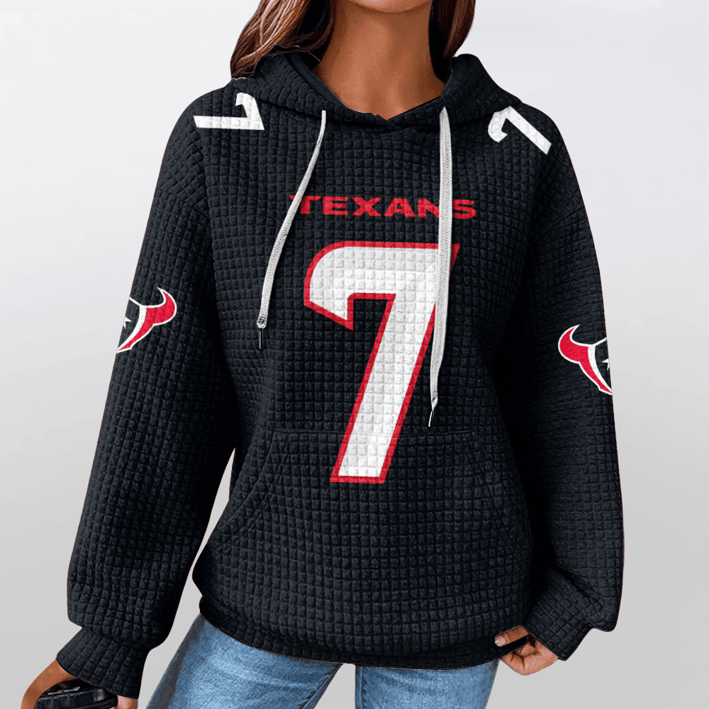 Houston Texans Black Waffle Hoodie Custom Name And Number