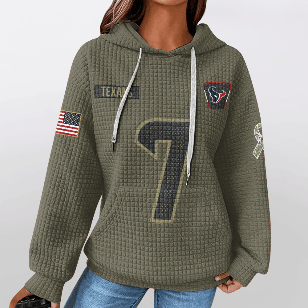 Houston Texans Olive Waffle Hoodie Custom Name And Number