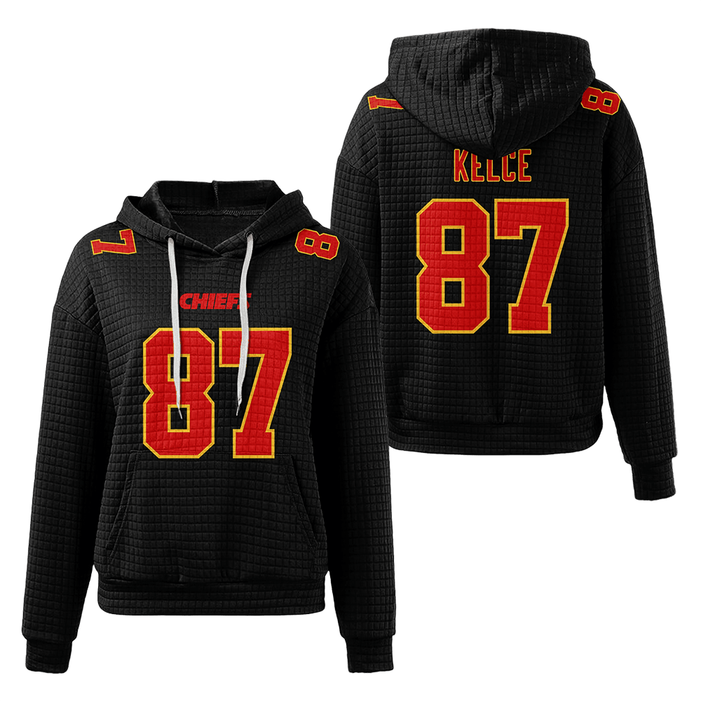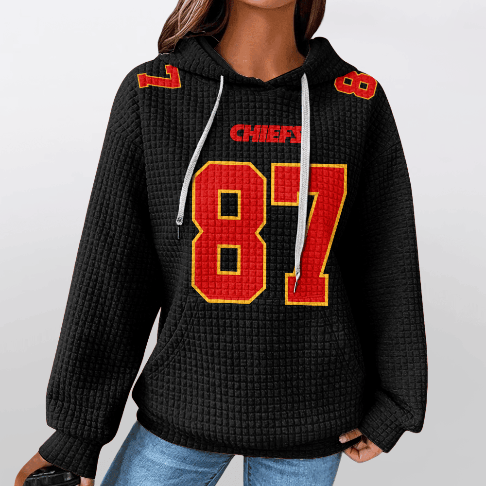 Kansas City Chiefs Black Waffle Hoodie Custom Name And Number