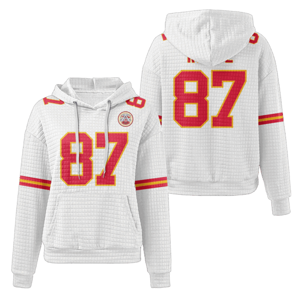 Kansas City Chiefs White Waffle Hoodie Custom Name And Number
