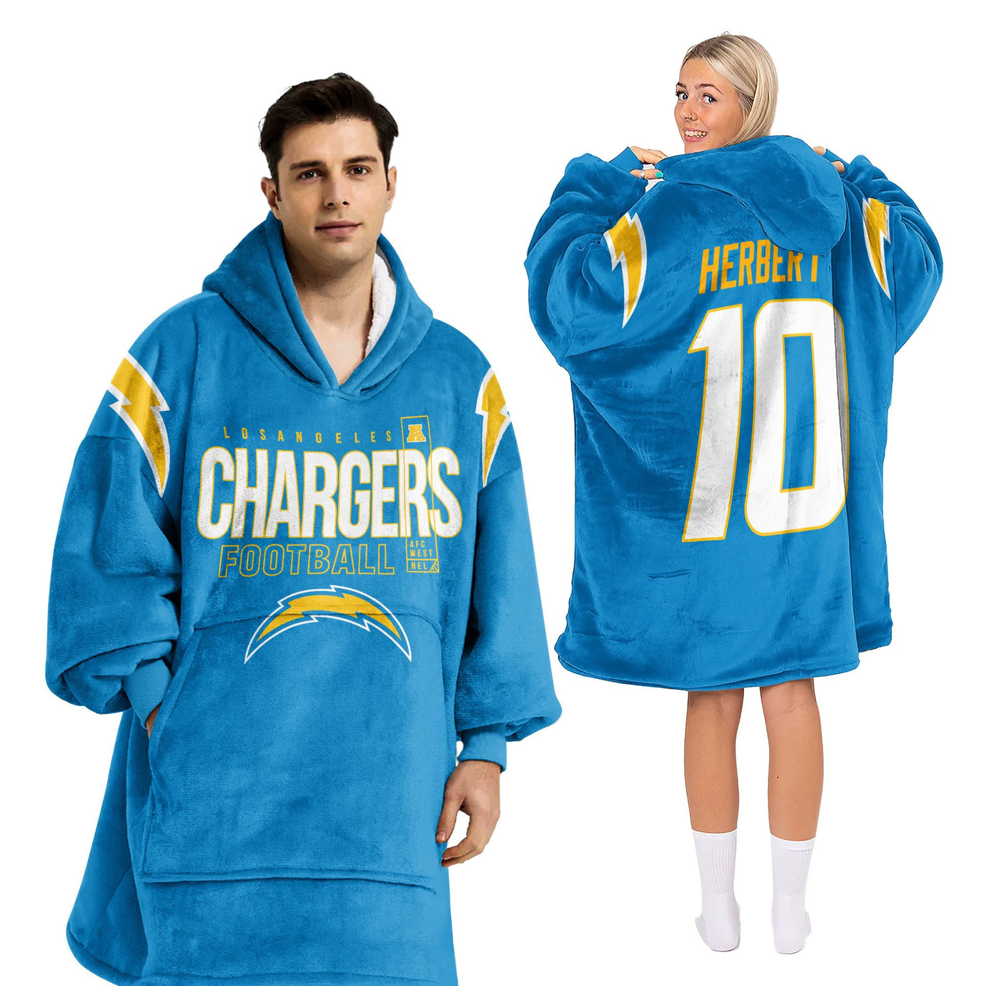 Los Angeles Chargers Football Unisex Blanket Hoodie Custom Name And Number