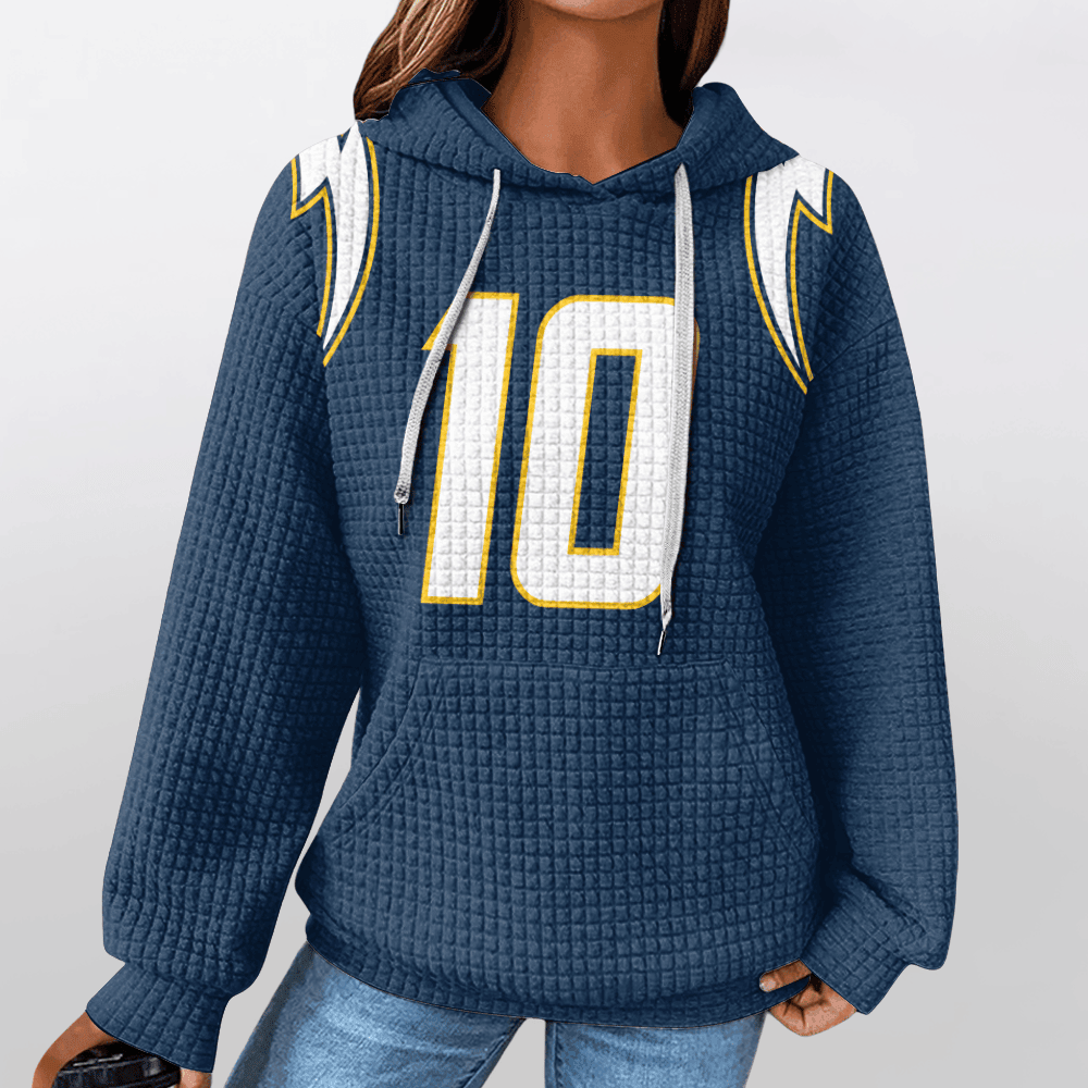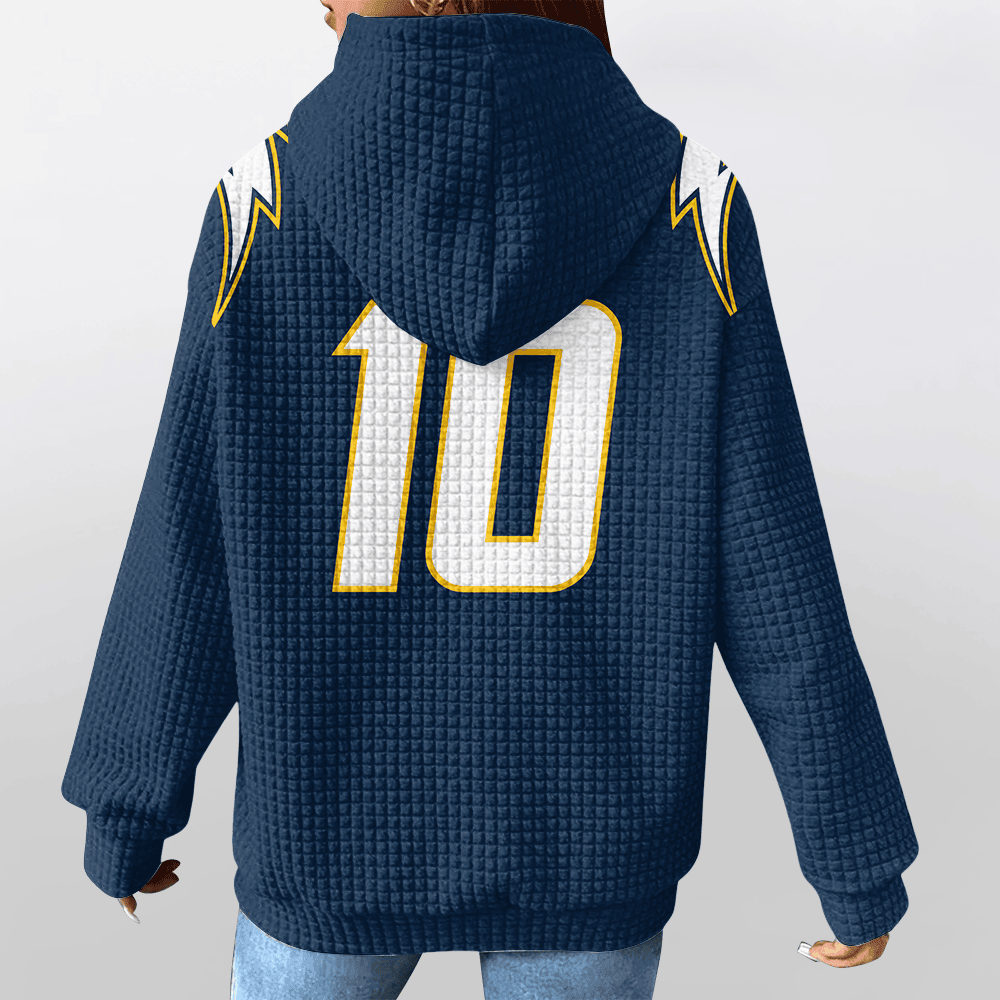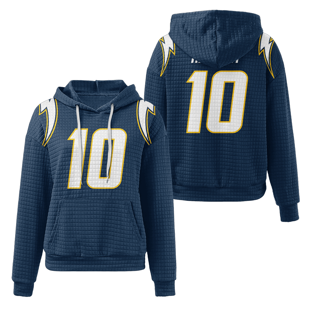 Los Angeles Chargers Navy Waffle Hoodie Custom Name And Number