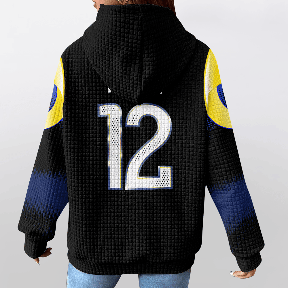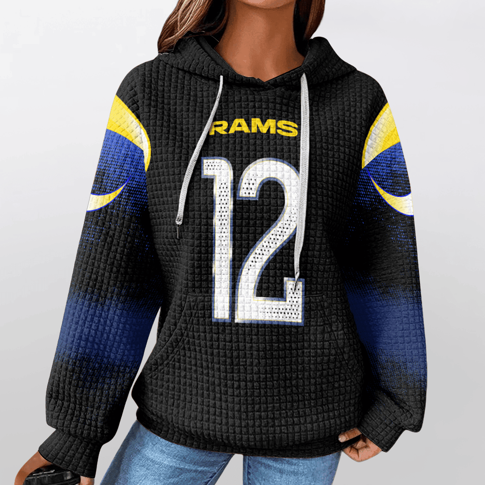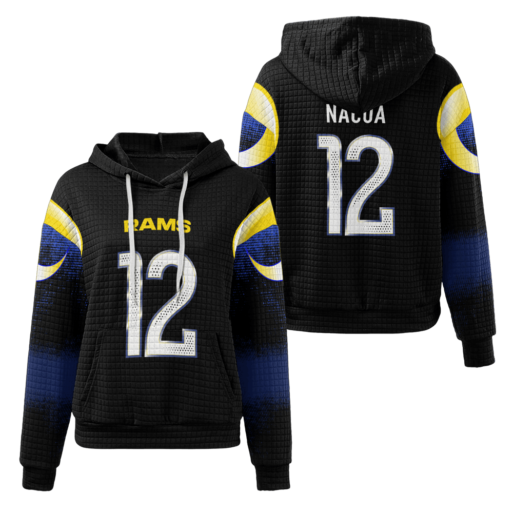 Los Angeles Rams Midnight Blue Waffle Hoodie Custom Name And Number