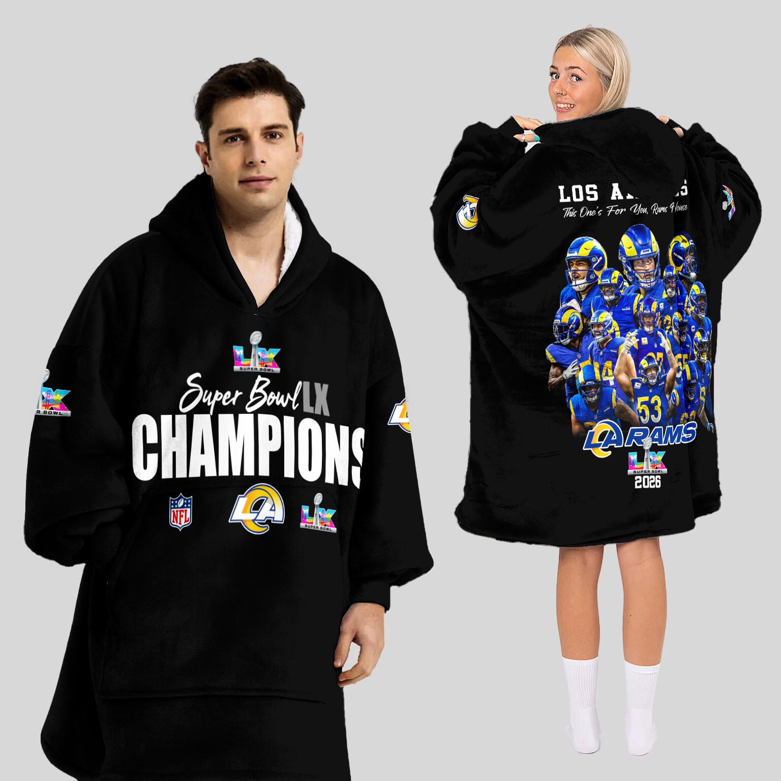 Los Angeles Rams Super Bowl LX Champions Style Blanket Hoodie