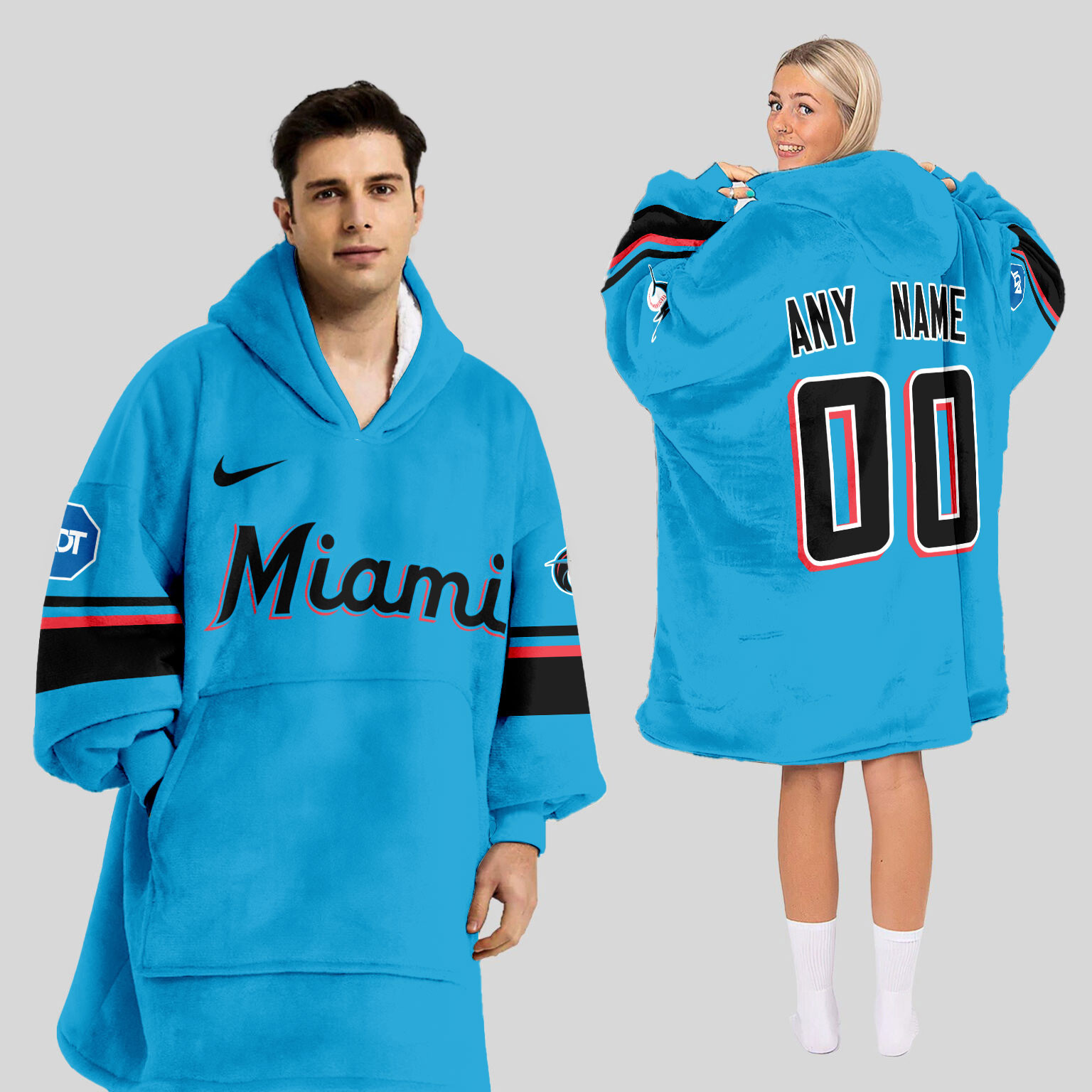 Miami Marlins MLB Design Blanket Hoodie Custom Name And Number