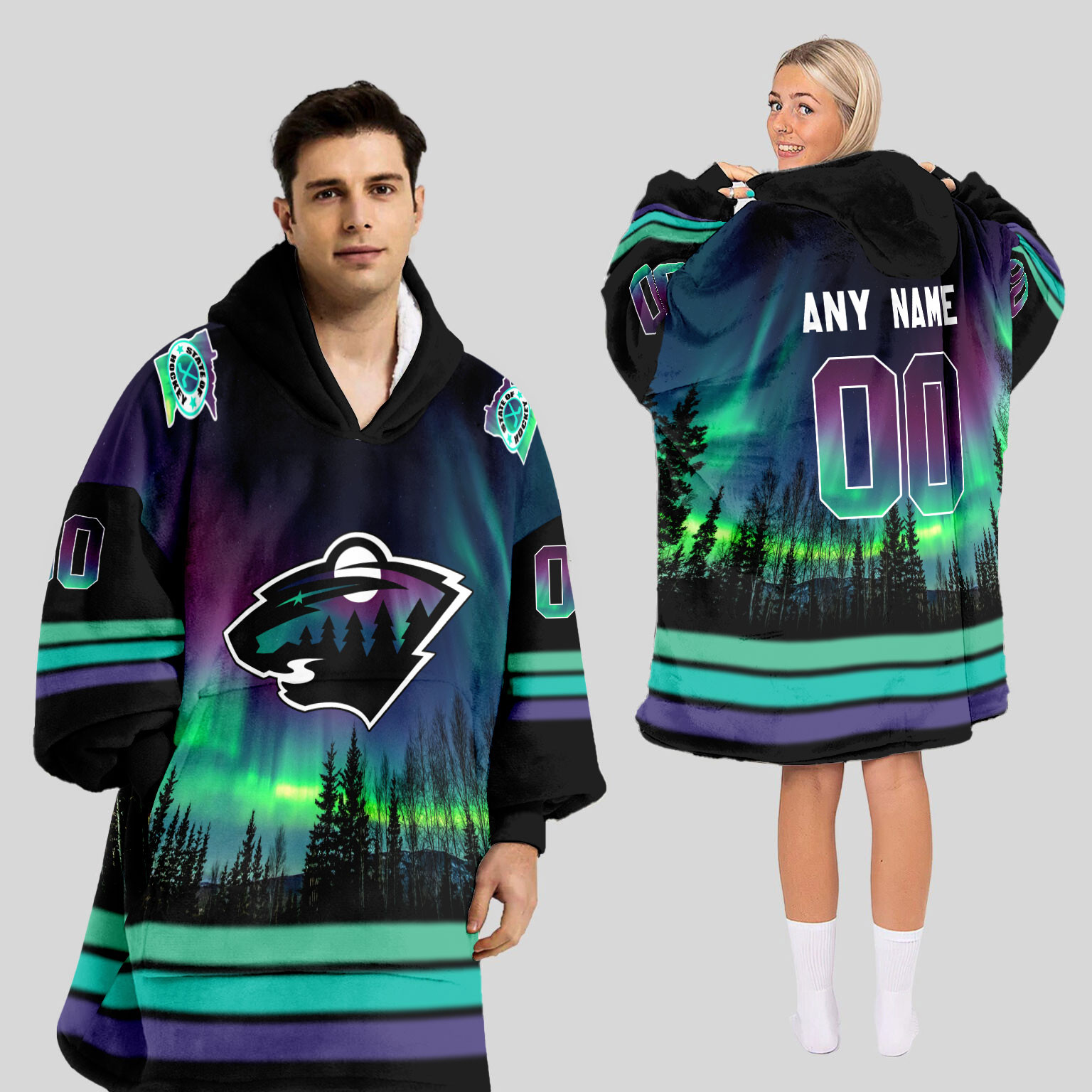 Minnesota Wild Blanket Hoodie Custom Name And Number