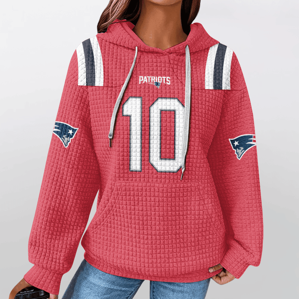 New England Patriots White Waffle Hoodie Custom Name And Number
