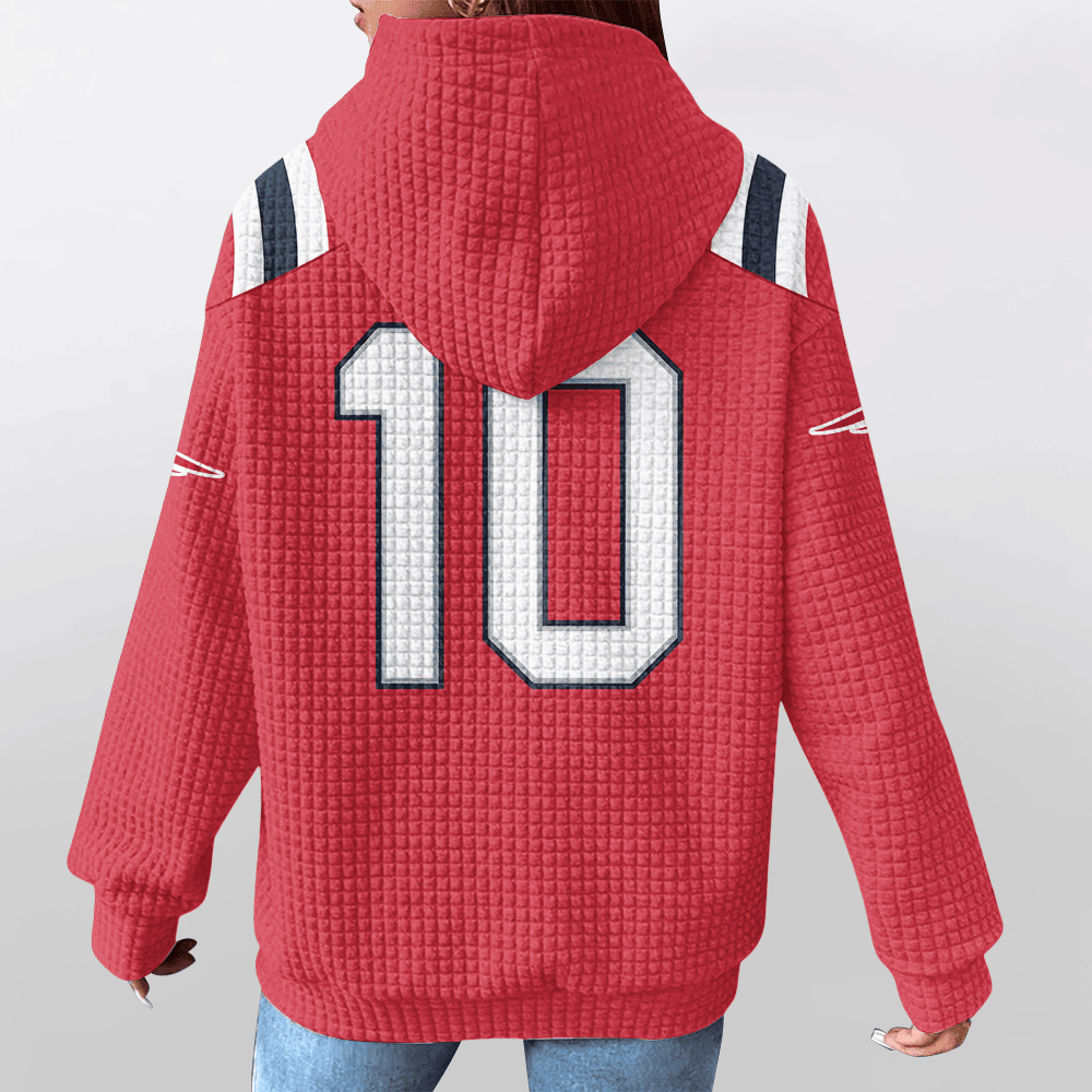 New England Patriots Red Waffle Hoodie Custom Name And Number