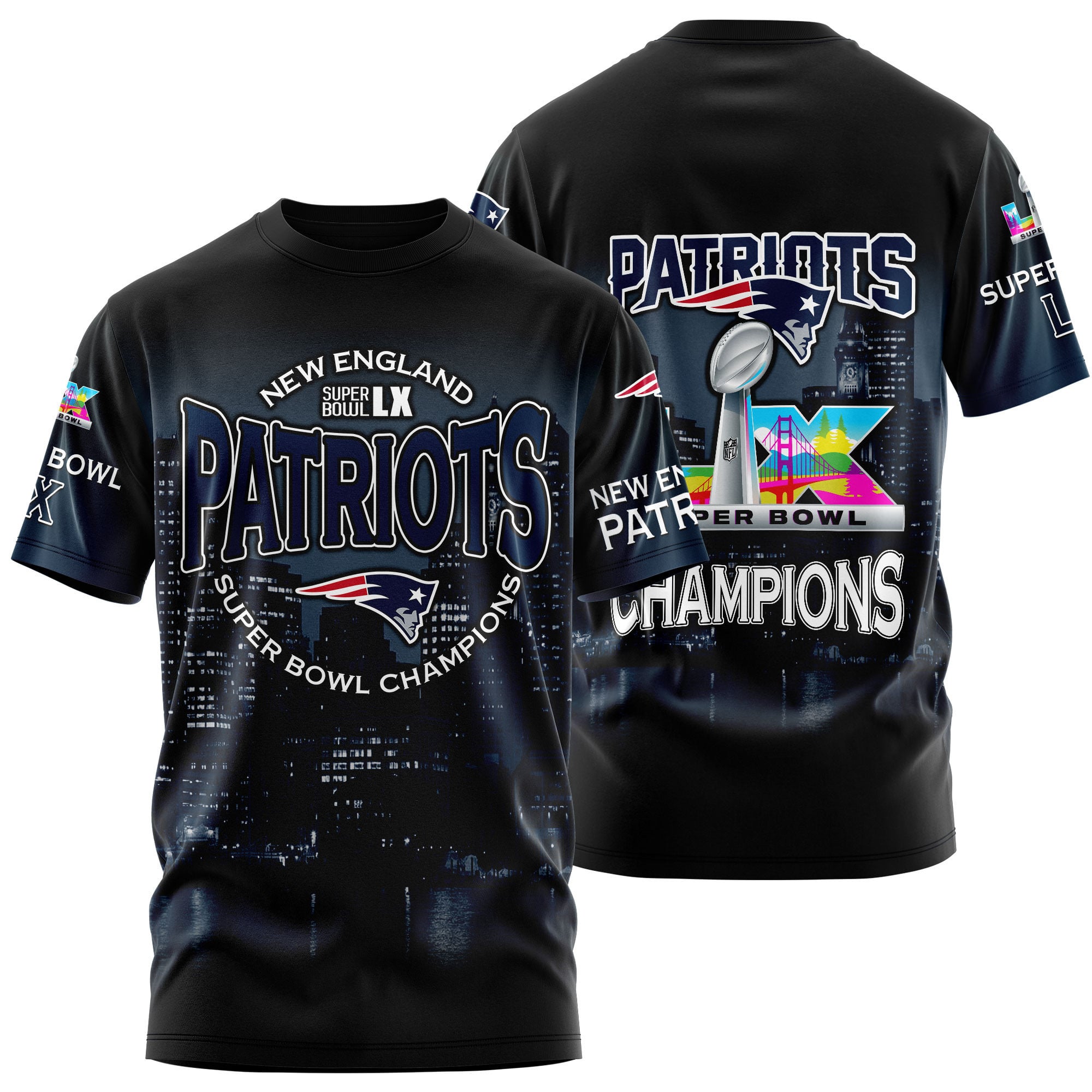 New England Patriots Super Bowl LX Champions Style 3D T-Shirt