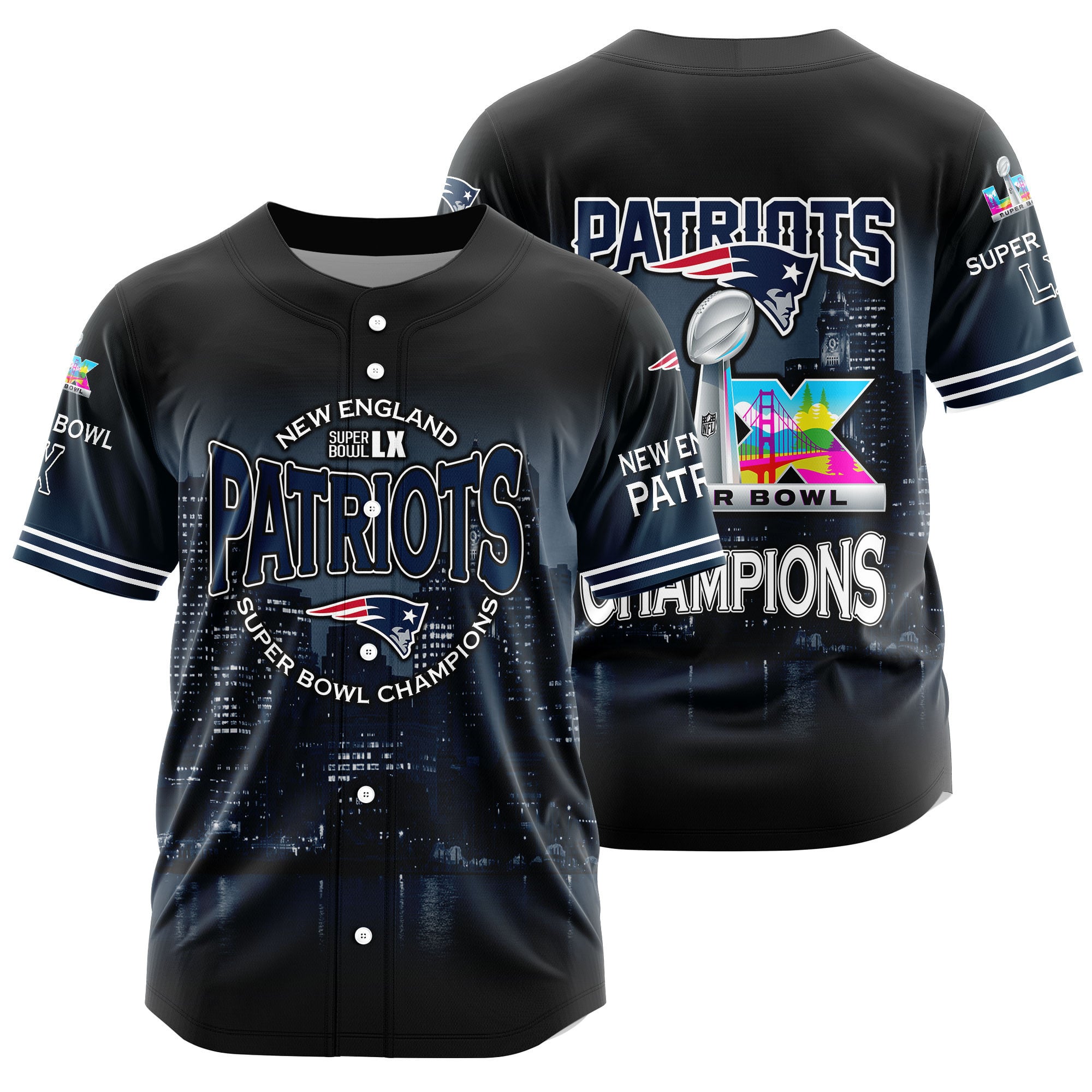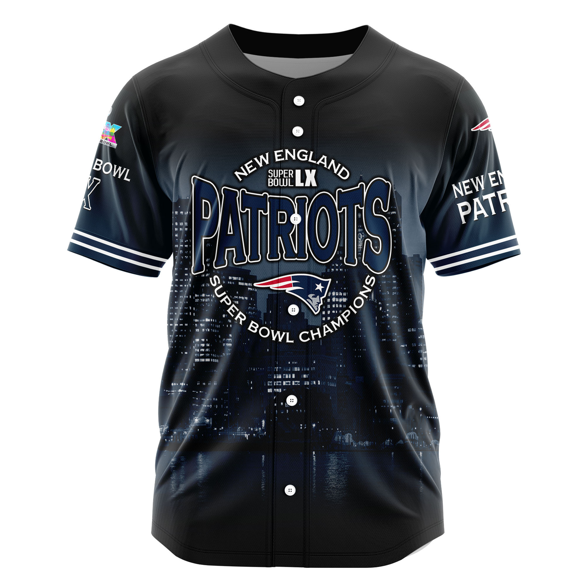 New England Patriots Super Bowl LX Champions Style Baseball Jersey