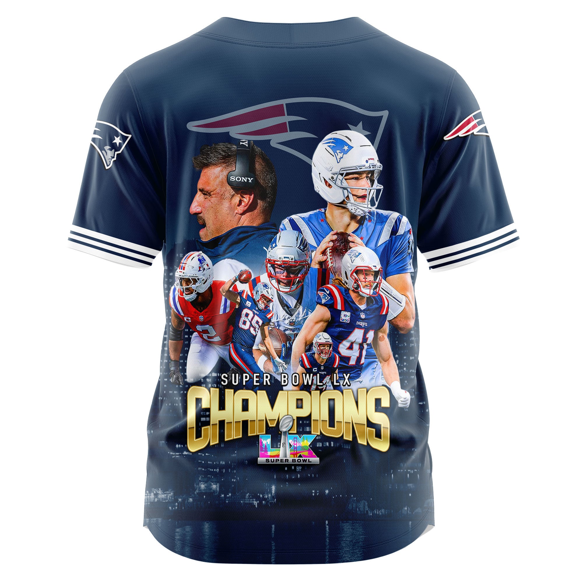 New England Patriots Super Bowl LX Champions Style Baseball Jersey