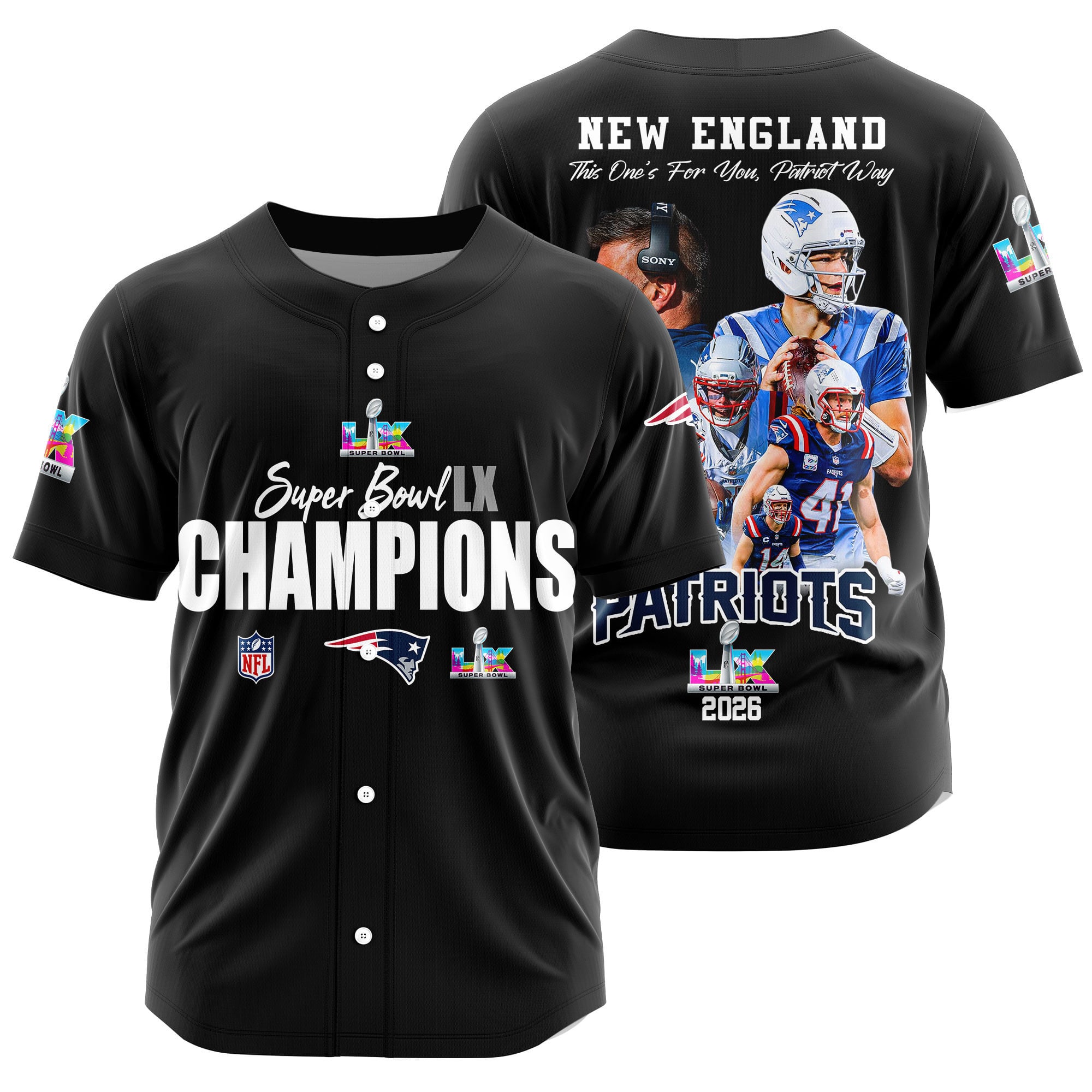 New England Patriots Super Bowl LX Champions Style Baseball Jersey