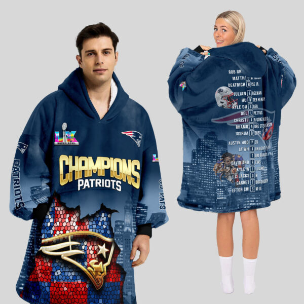 New England Patriots Super Bowl LX Champions Style Blanket Hoodie