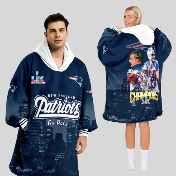 New England Patriots Super Bowl LX Champions Style Blanket Hoodie