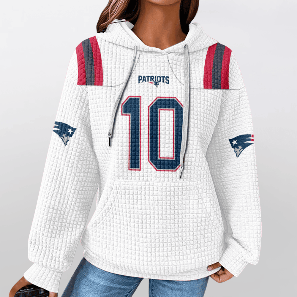 New England Patriots White Waffle Hoodie Custom Name And Number