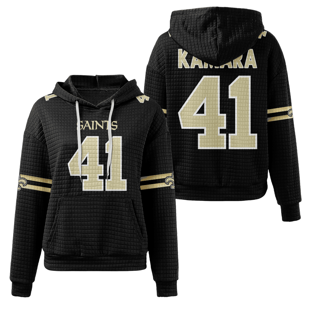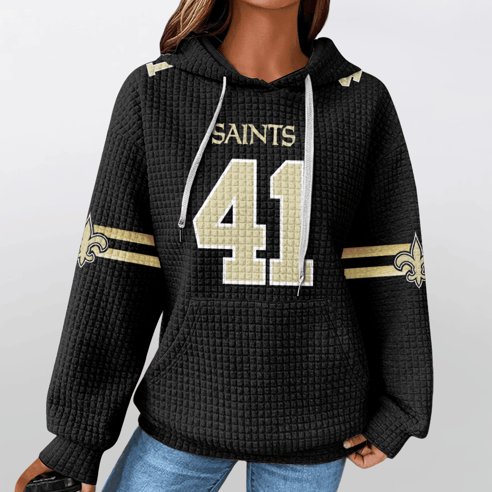New Orleans Saints Black Waffle Hoodie Custom Name And Number