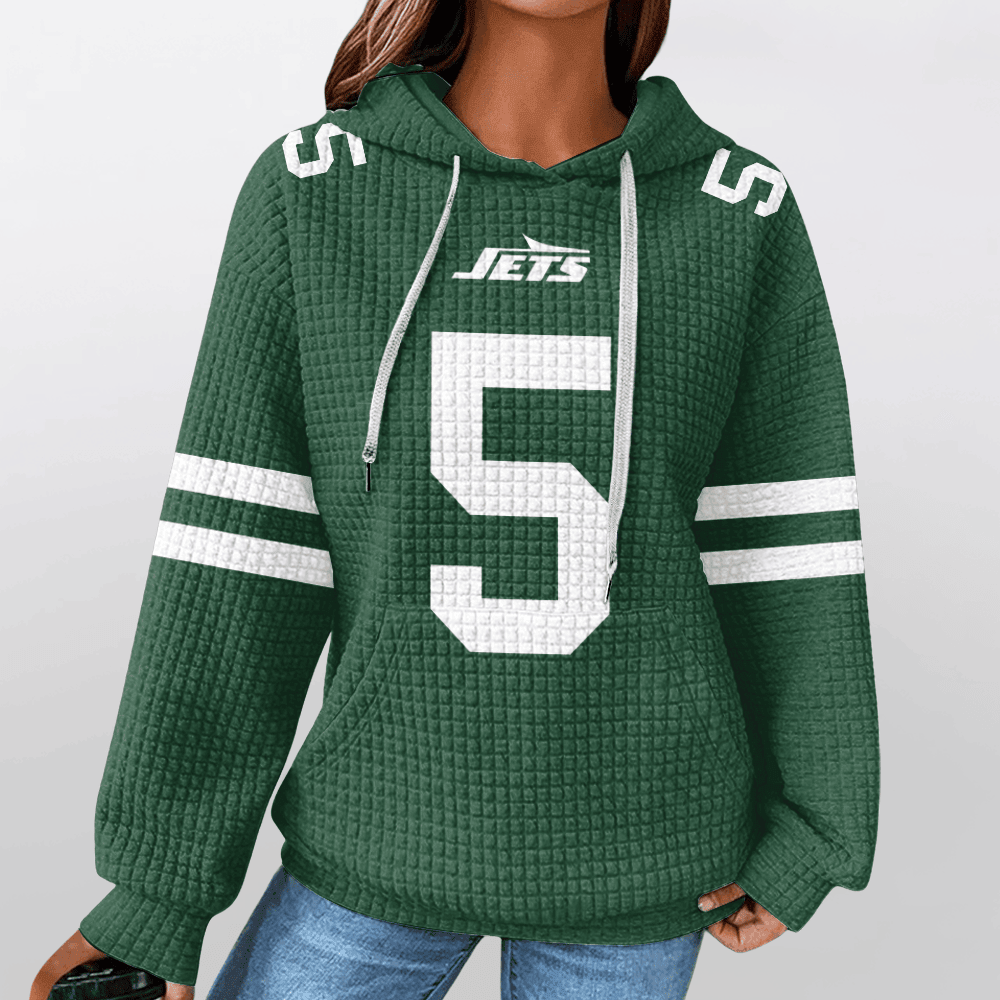 New York Jets Green Waffle Hoodie Custom Name And Number