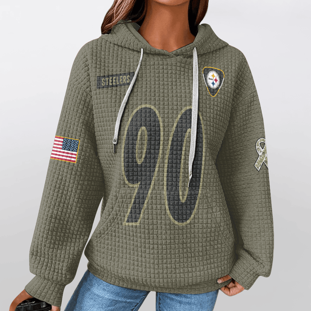 Pittsburgh Steelers Olive Waffle Hoodie Custom Name And Number