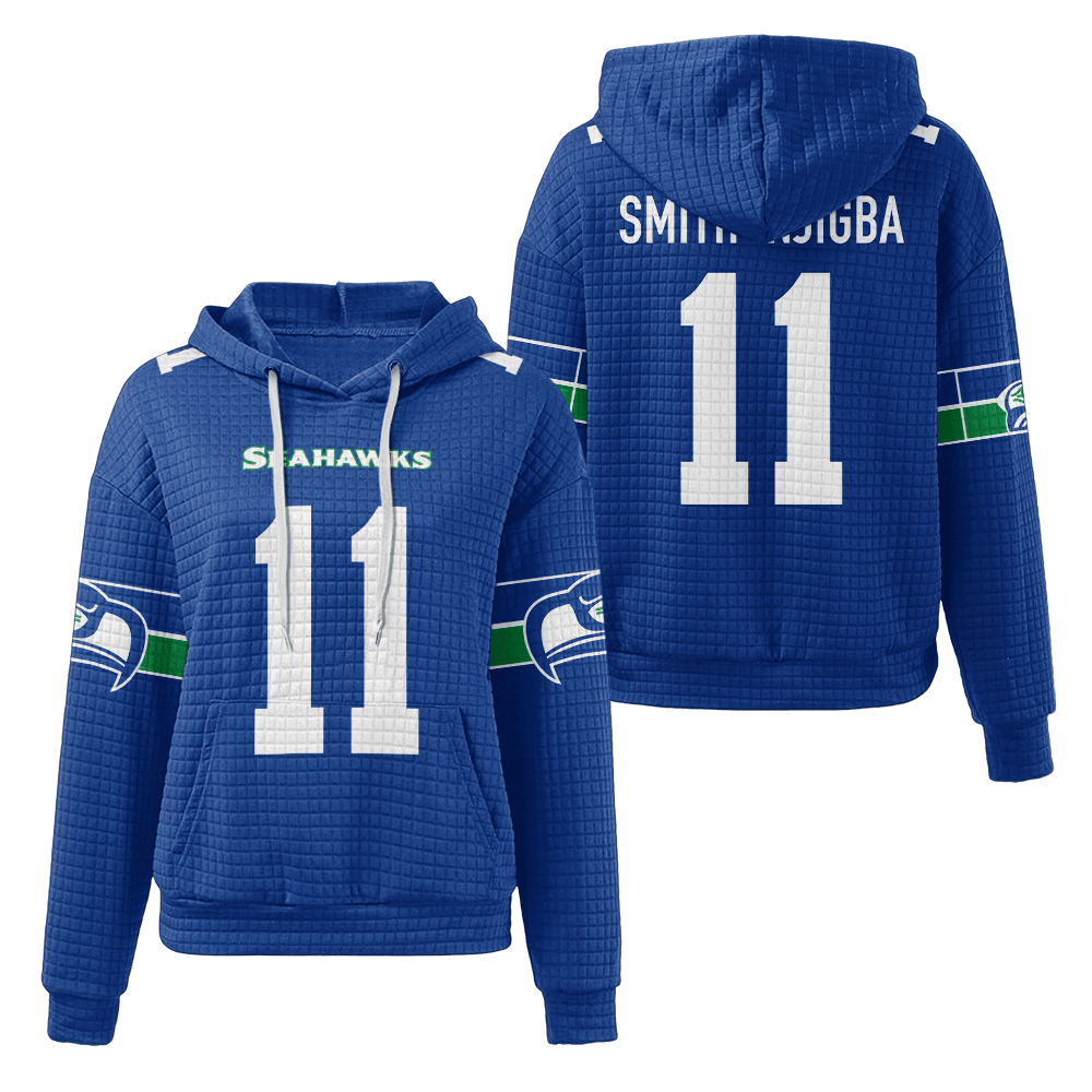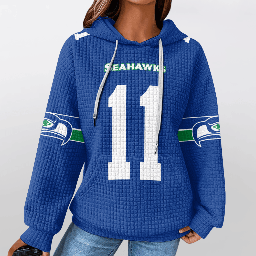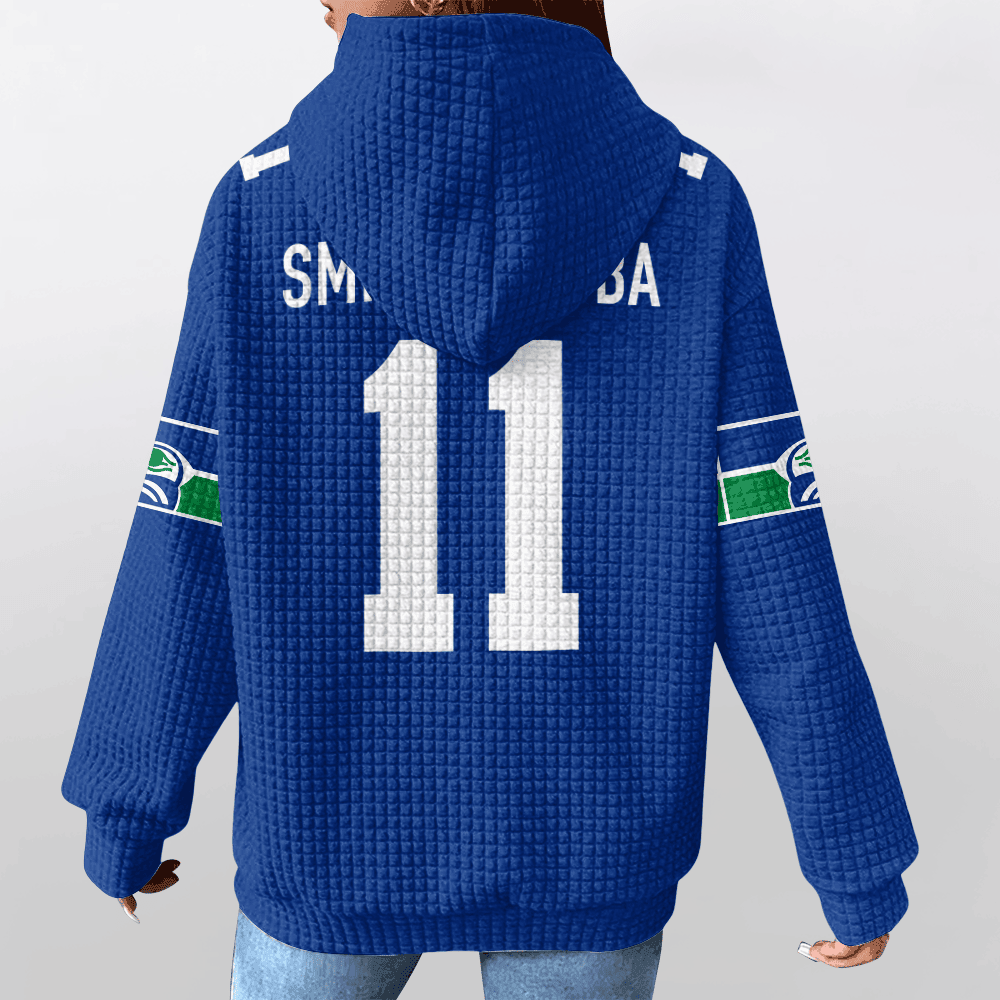 Seattle Seahawks Royal Waffle Hoodie Custom Name And Number