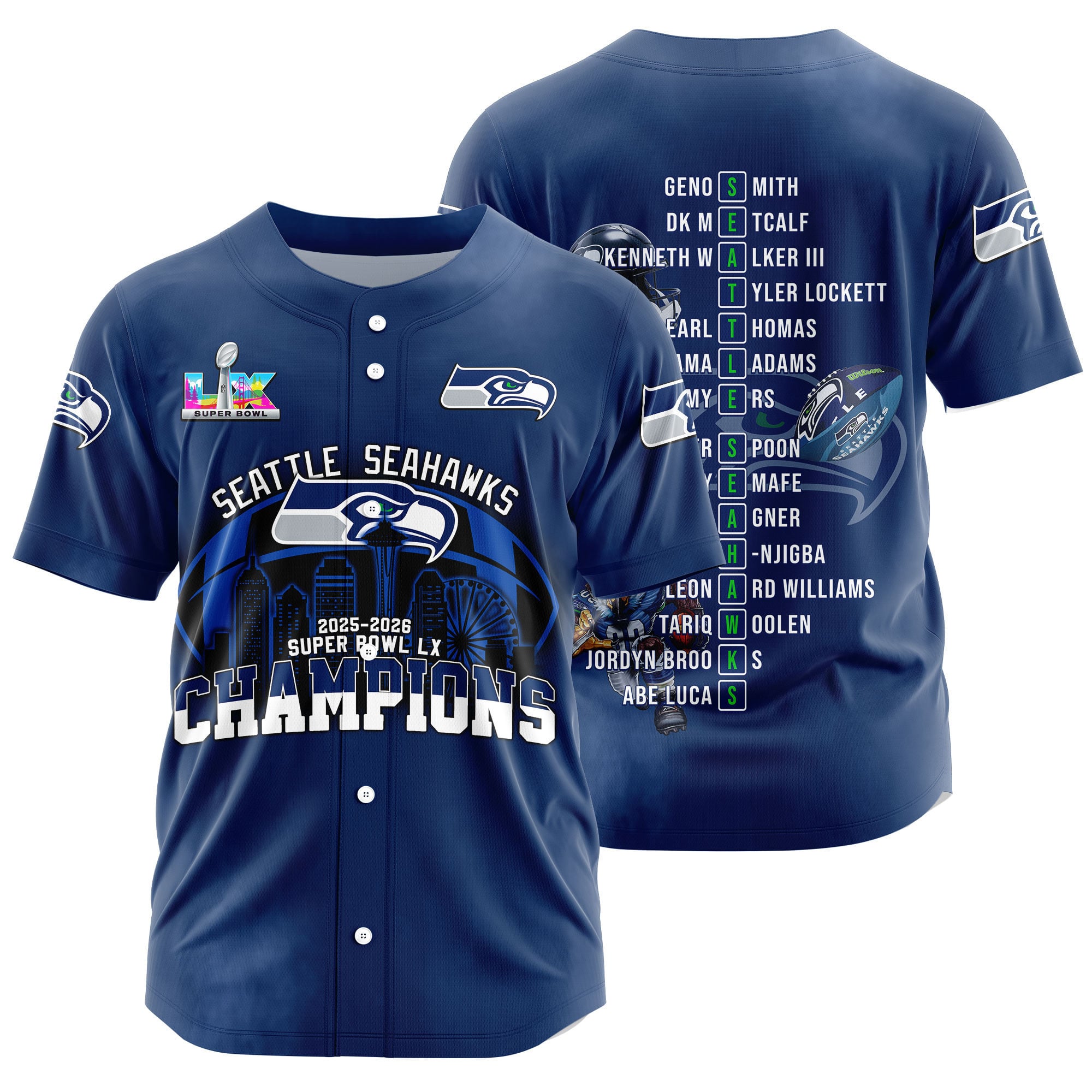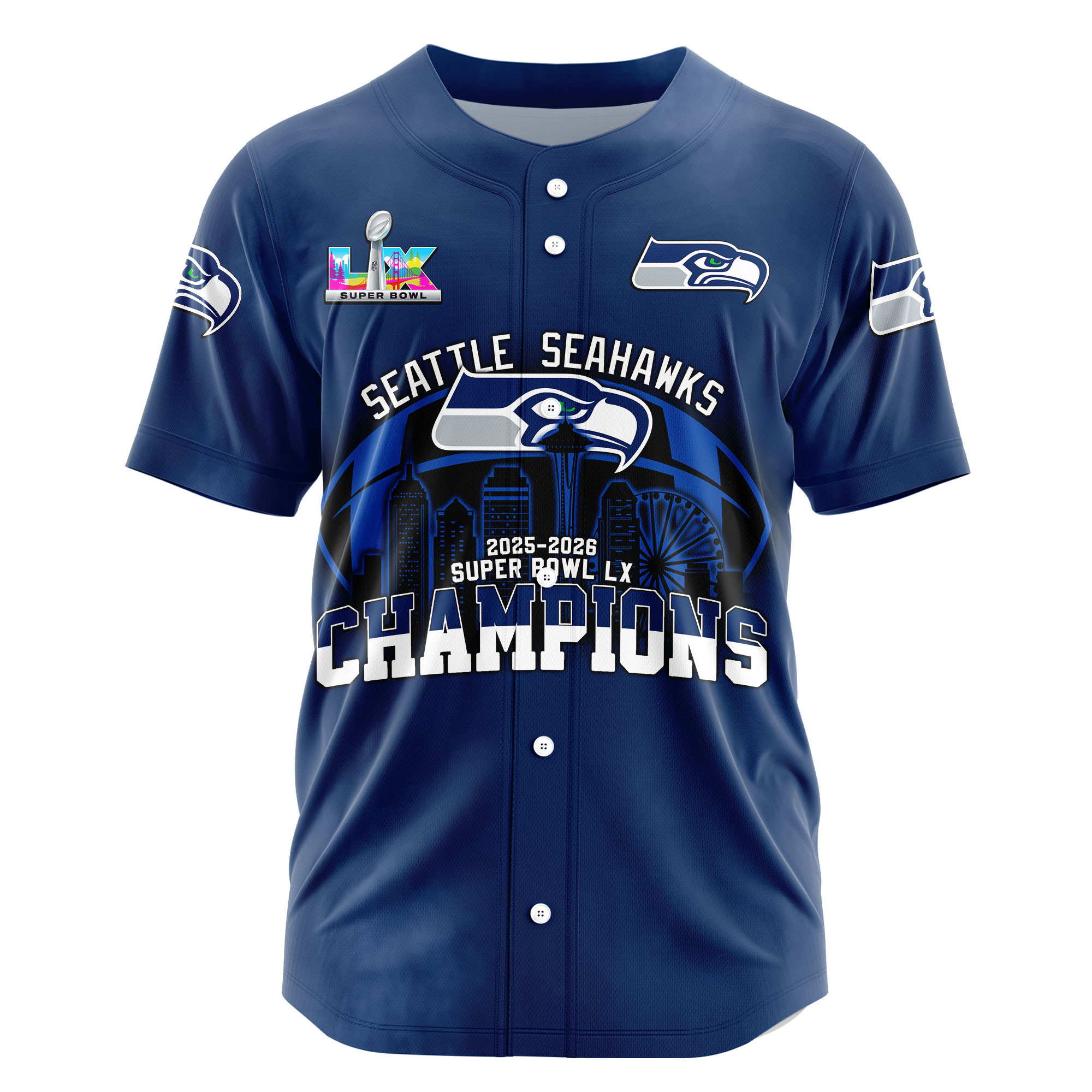 Seattle Seahawks Super Bowl LX Champions Style Baseball Jersey