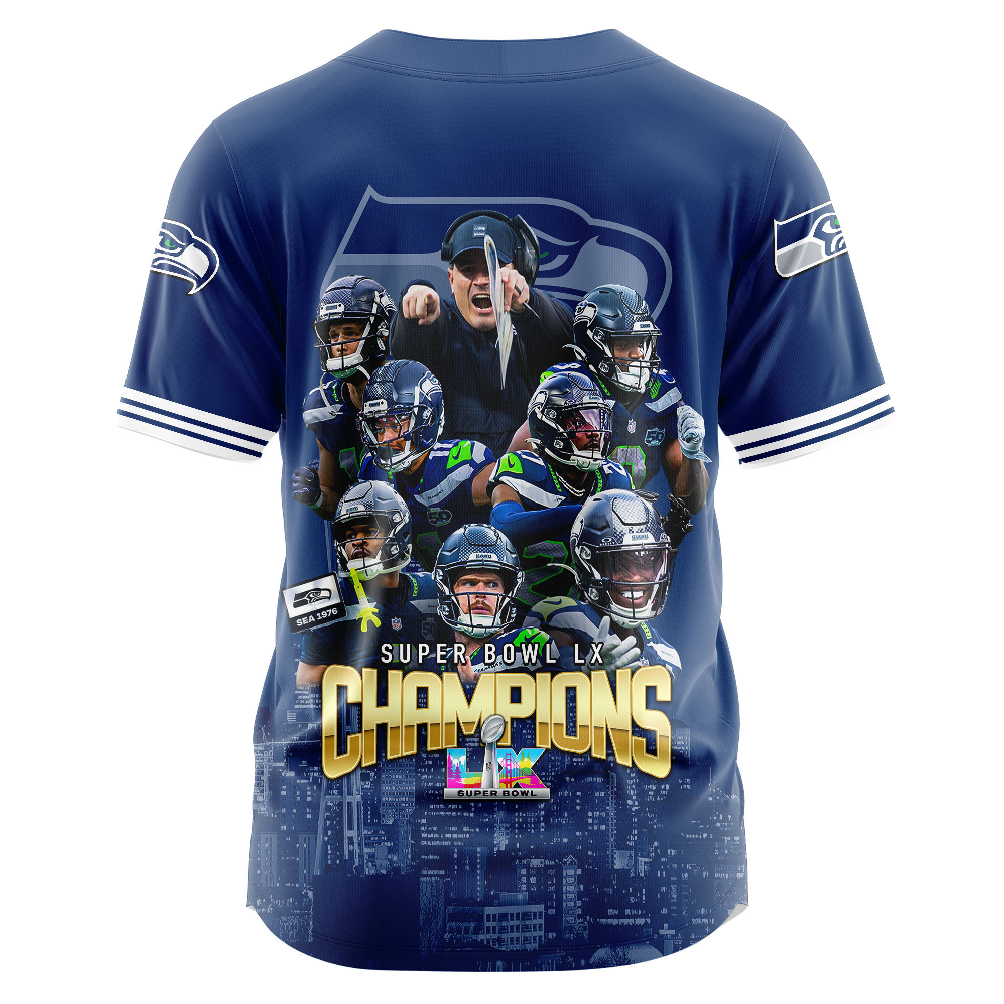 Seattle Seahawks Super Bowl LX Champions Style Baseball Jersey