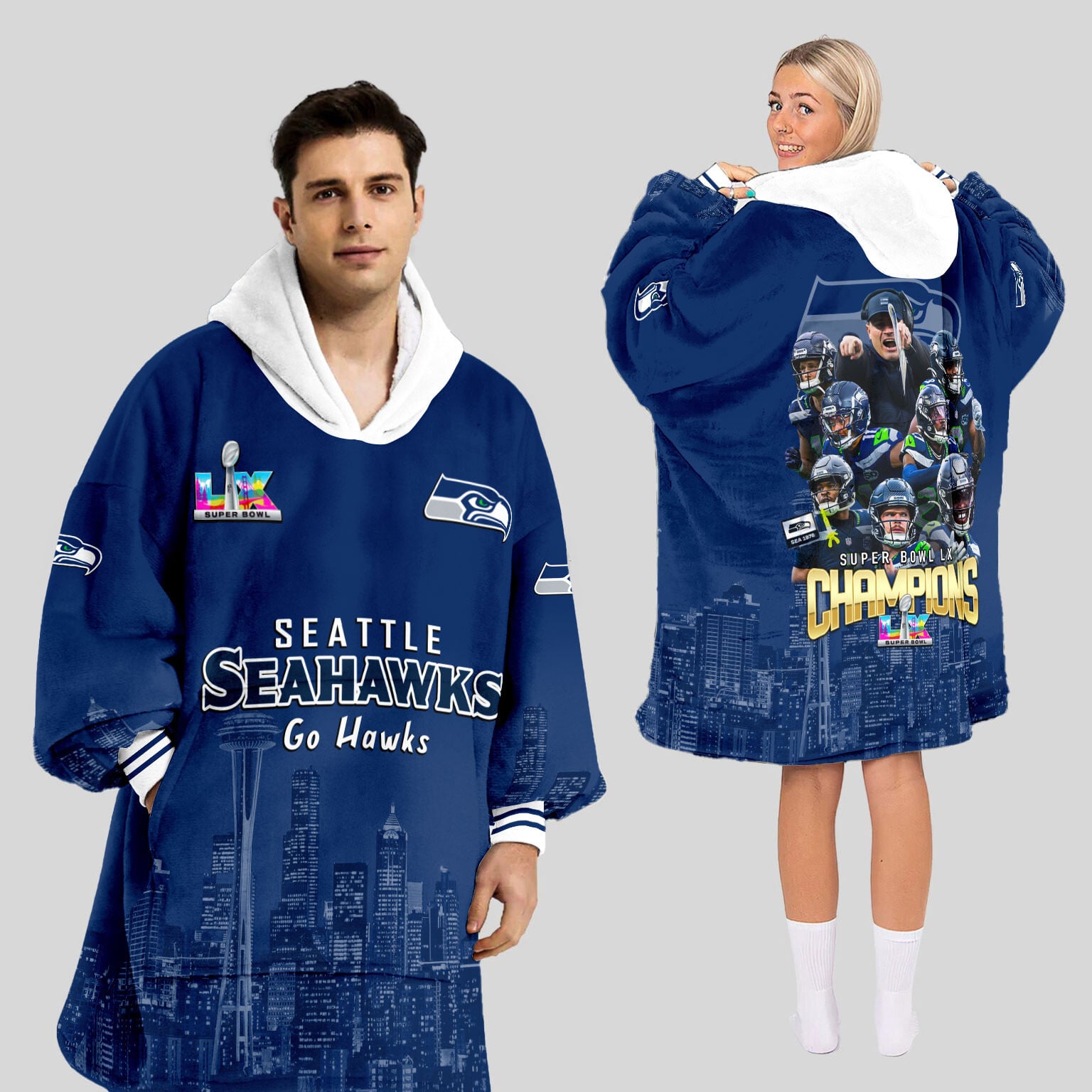Seattle Seahawks Super Bowl LX Champions Style Blanket Hoodie