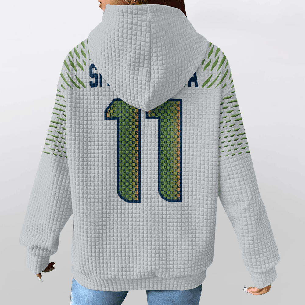 Seattle Seahawks Wolf Gray Waffle Hoodie Custom Name And Number