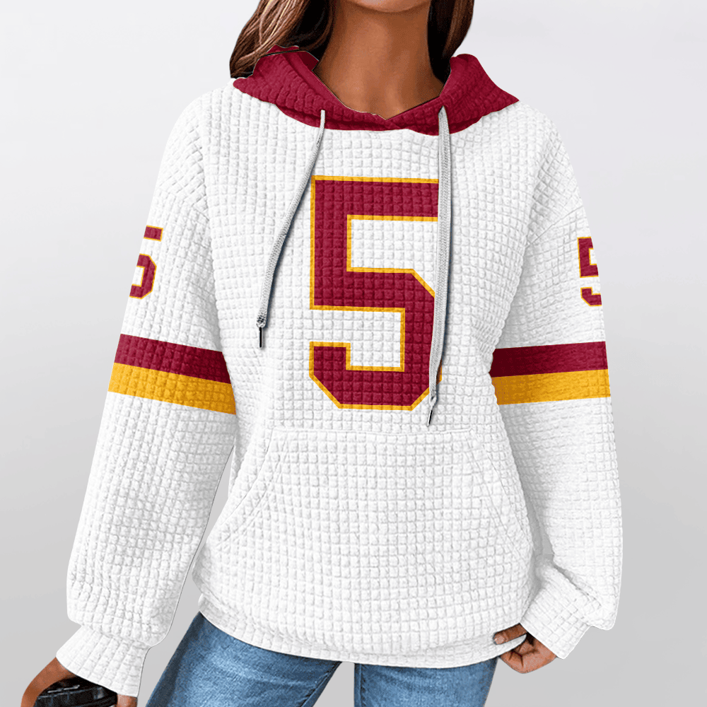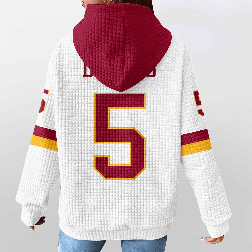 Washington Commanders White Waffle Hoodie Custom Name And Number