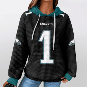 Philadelphia Eagles Kelly Green Waffle Hoodie Custom Name And Number